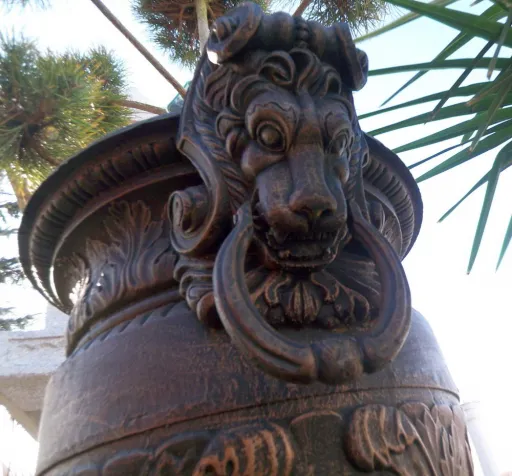 Die Amphore Spessart ist eine große Gusseisenamphore mit Griffen, die auf einem Sockel steht. Die antike Bronzeoptik macht die Amphore zum Prachtstück in jedem Park und Garten. Ein besonderer Augenschmaus sind die hochwertig gearbeiteten Löwenköpfe, die sich auf den vier Seiten des Amphorensockels und seitlich unter den Griffen der Amphore selbst befinden. Im Boden der Amphore befindet sich ein Loch, das bei Verwendung als Pflanzschale dazu dient überschüssiges Wasser nach unten abzuleiten.