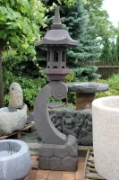 Diese Rankei Steinlaterne, welche mit zwei Metern besonders groß ist, wurde in Handarbeit gefertigt und besteht aus sechs Teilen.