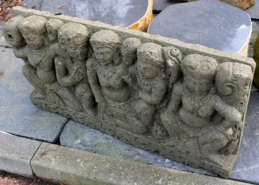 Dieses indonesische Wandrelief aus dem Naturstein Basanit ist ein echtes Schmückstück für die Wanddekoration. Das von erfahrenen Steinmetzen, in handwerklicher Arbeit, künstlerisch aus dem Stein heraus gearbeitetete Relief, sollte in eine Mauer oder Hauswand eingearbeitet werden.