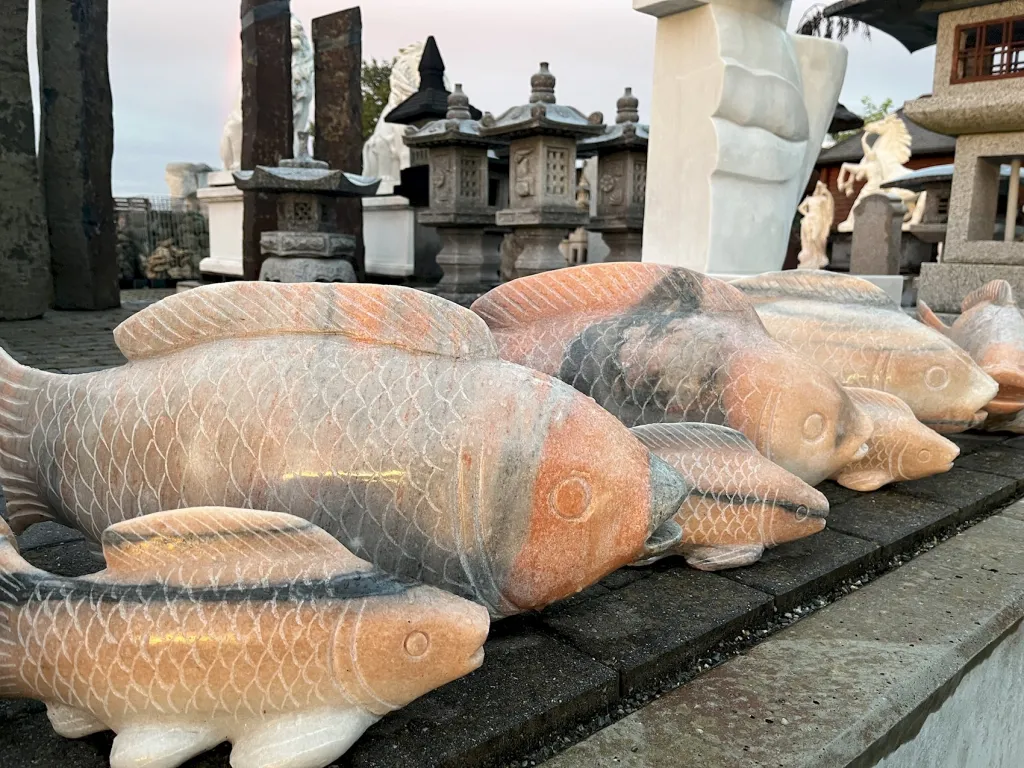 Unsere Koi Fische aus Marmor vereinen natürliche Eleganz und fernöstliche Symbolik. Ob als Blickfang am Koiteich oder stilvolles Gartenelement – diese handgearbeiteten Natursteinfiguren stehen für Ruhe, Ausdauer und ästhetische Schönheit.