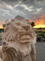 Das Löwenpaar stellt ein Meisterstück an bildhauerischer Kunst dar. Schon der erste Blick zeigt, dass die Löwen eine aufwendige Arbeit sind, welche nur von einem talentierten Steinbildhauer gefertigt sein kann. Der orange geflammte Marmor gibt den Löwen ein edles und hochwertiges Erscheinungsbild. Jeder Löwe wurde aus einem Stück in Handarbeit aus diesem wunderschönen Naturstein gefertigt. Die Oberfläche ist teilweise poliert. Durch diese Oberfächenbearbeitung kommt die orange geflammte Färbung des Marmors voll zur Geltung.