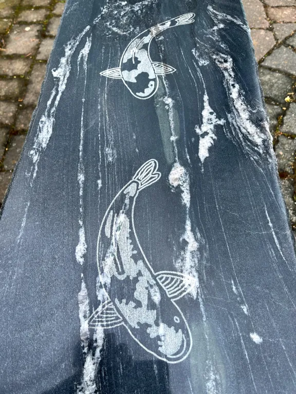 Polierte Sitzfläche mit Eingefrästen Koi-Fischen