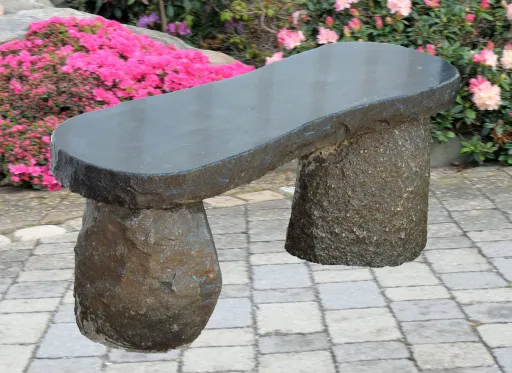 Die Steinbank besteht aus drei Teilen, die den Transport erleichtern. Basalt bildet bei der raschen Abkühlung des heißen Magmas, meist mehreckige Säulen. Das innere der Säulen hat eine anthrazite Färbung. Die äußere Naturkruste ist meißt ockerfarben bis bräunlich.